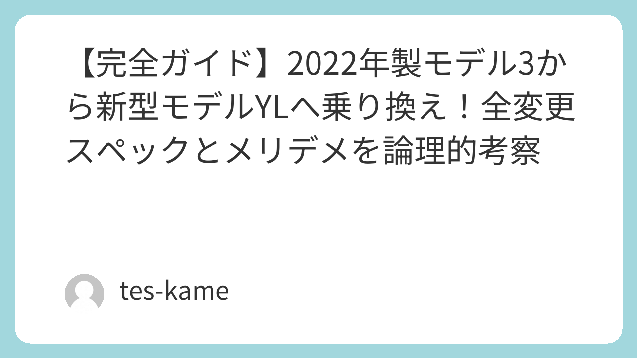 納車後に「こんなはずじゃなかった」と後悔しないために。今回は、2022年製Model 3から新型モデルYLへ乗り換える際に直面する「全変更点」を網羅し、実際の生活におけるメリットとデメリットを物理的・論理的に徹底解説します!📊